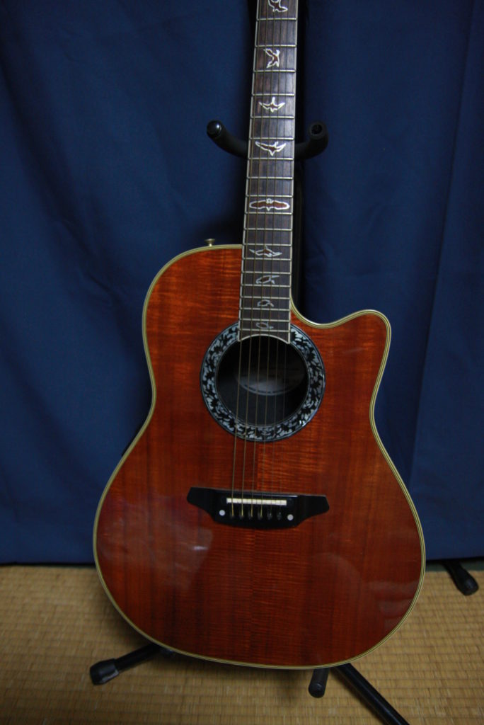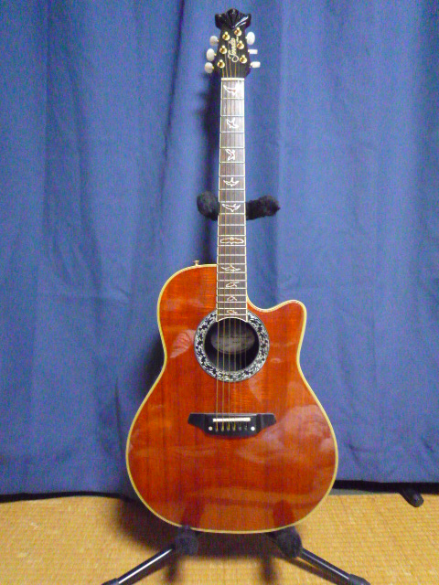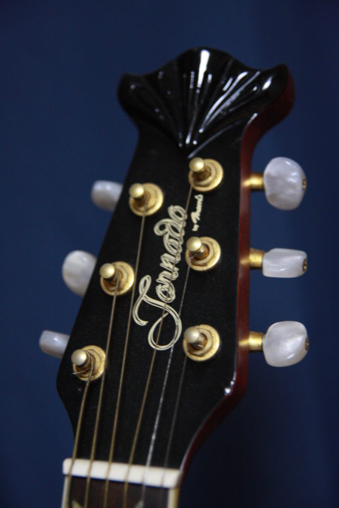 表板にハワイアンコア材を使用しているのだろうか、カタログ外の製品である。オークションでも時々見かける。ZⅡ音質はそのままに、スプルースTop、メイプルTopのTORNADOと比較しても、やや硬めで深みのある音質が心地よい。ポジションマークには、インレイシールを貼った。