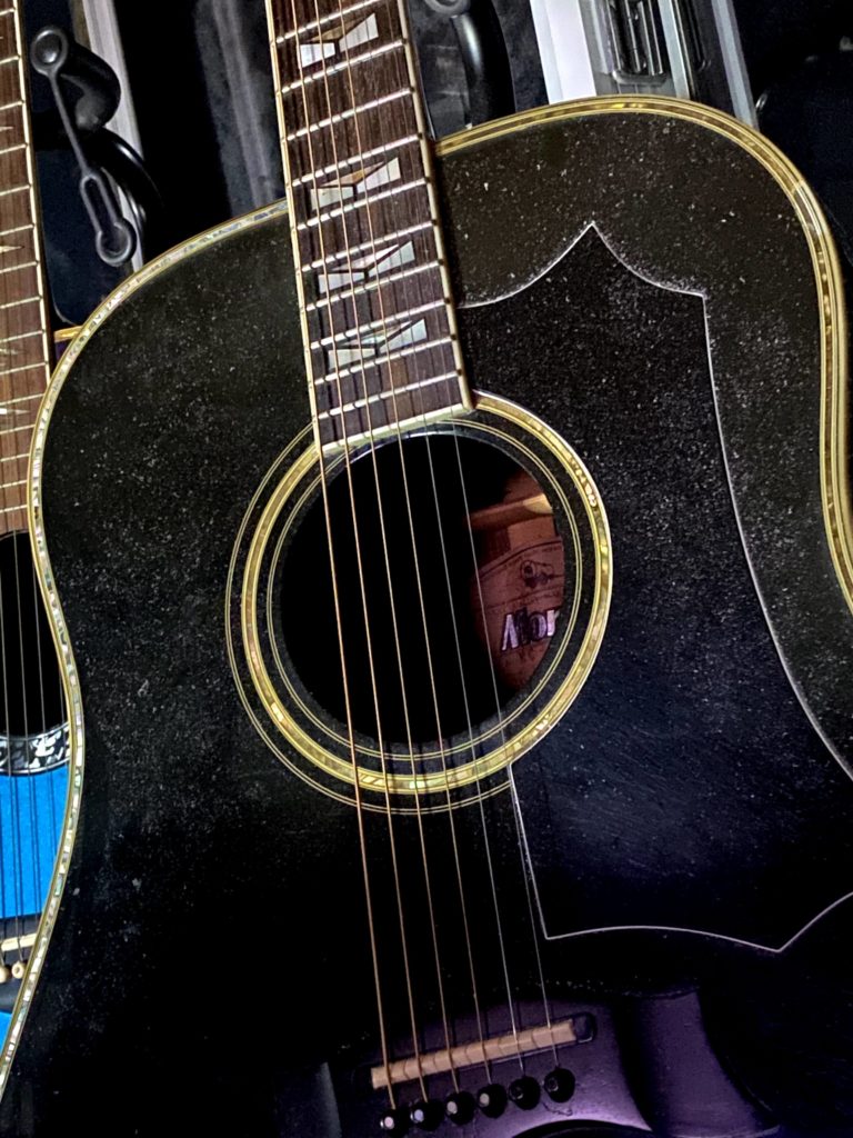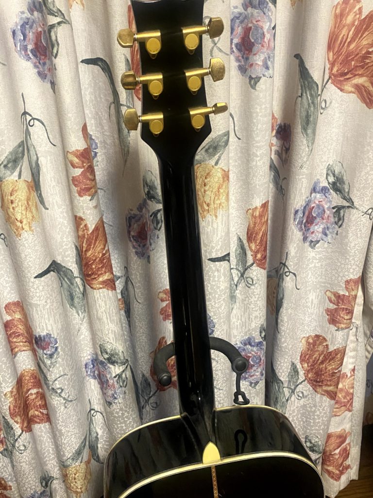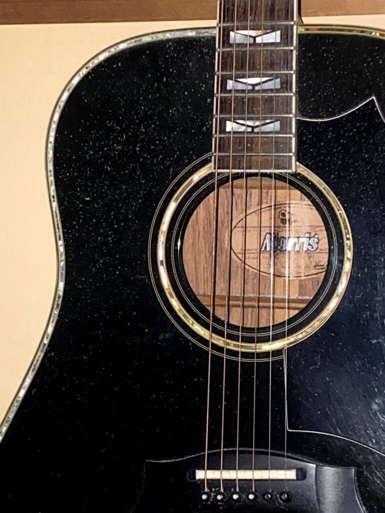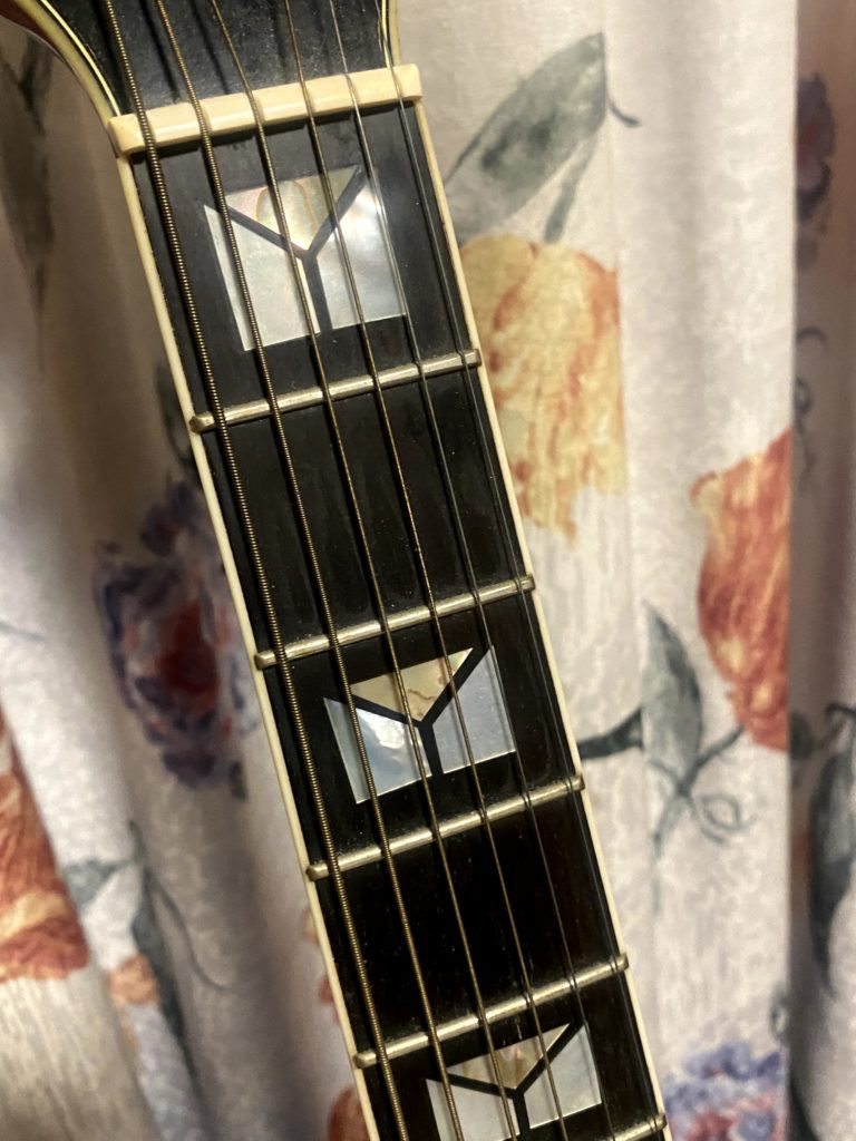 谷村新司モデルはMG-100以降、材の種類を変えてシリーズの拡大が図られる。MG-120Eはハカランダをそのままに、ブラック塗装とピックアップ搭載を施したモデルである。カタログモデルとしてブラック塗装がメインであるが、極稀にナチュラルやブラウンカラーの製品も見かける。サドルがエレアコ仕様としているので、材は同じでもMG-100とは音質が異なる。生鳴りはやや物足りなさを感じる。本機は、表板のパーフリングをアバロンに入れ換えを施した。(写真1枚目、2枚目は入れ換え後)