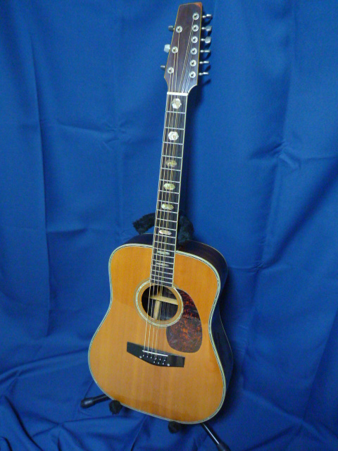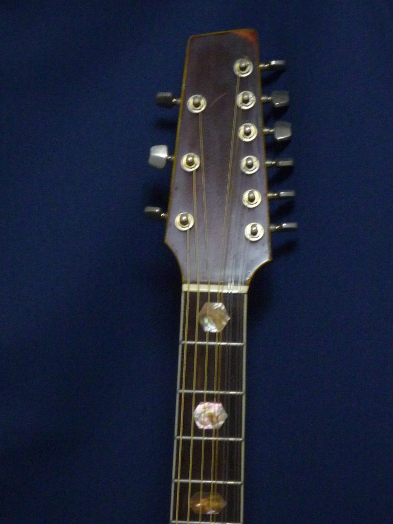 BW-80はシリーズの中堅機種である。最上位がBW-100であり、大きな違いは側裏板がハカランダからローズウッドに代わる点である。12弦ギターと6弦ギターを足して2で割ったようなギターだが、弾いてみると大変心地よい。確かに4~6弦は復弦にせずとも十分低音を奏でることができるし、1~3弦は復弦のため12弦ギターのような煌びやかなサウンドを奏でる実に理にかなった構成である。使い方としてはどうしても12弦ギターのような使い方になり、通常はストローク中心である。本個体ではヘッドのロゴは消されている。