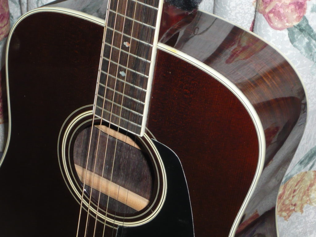 良材に拘り余計な装飾は省かれたMVシリーズラインナップのナンバー2のMV−715。オール単板である。本機はその中でも珍しいDV(ダークバイオリン)カラーを纏った個体である、10万円定価ではあるが、上位機種にも引けを取らないサウンドを奏でる、